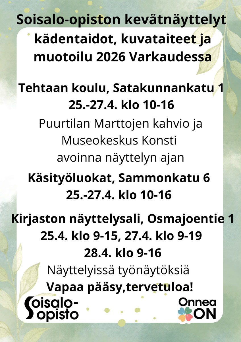 Soisalo-opiston kevätnäyttelyt Lue lisää